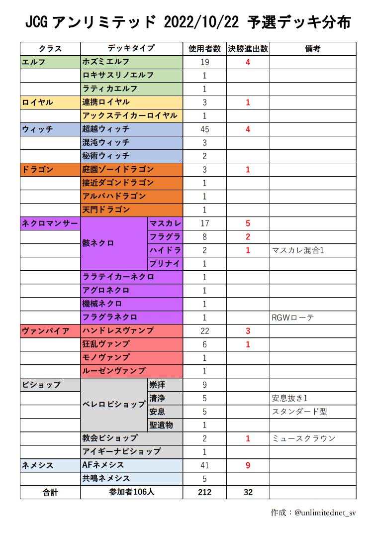 (登録デッキを変更できるため、決勝トーナメント分布と予選優勝分布は異なる可能性がある)